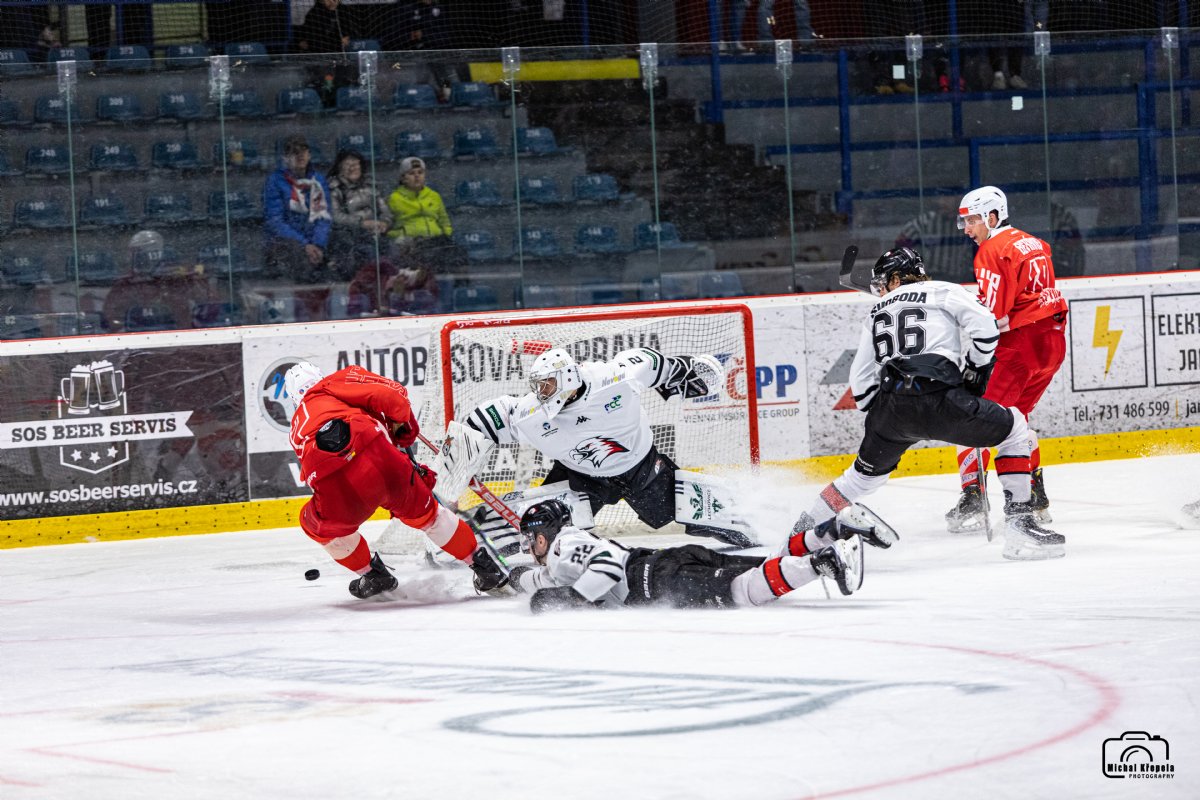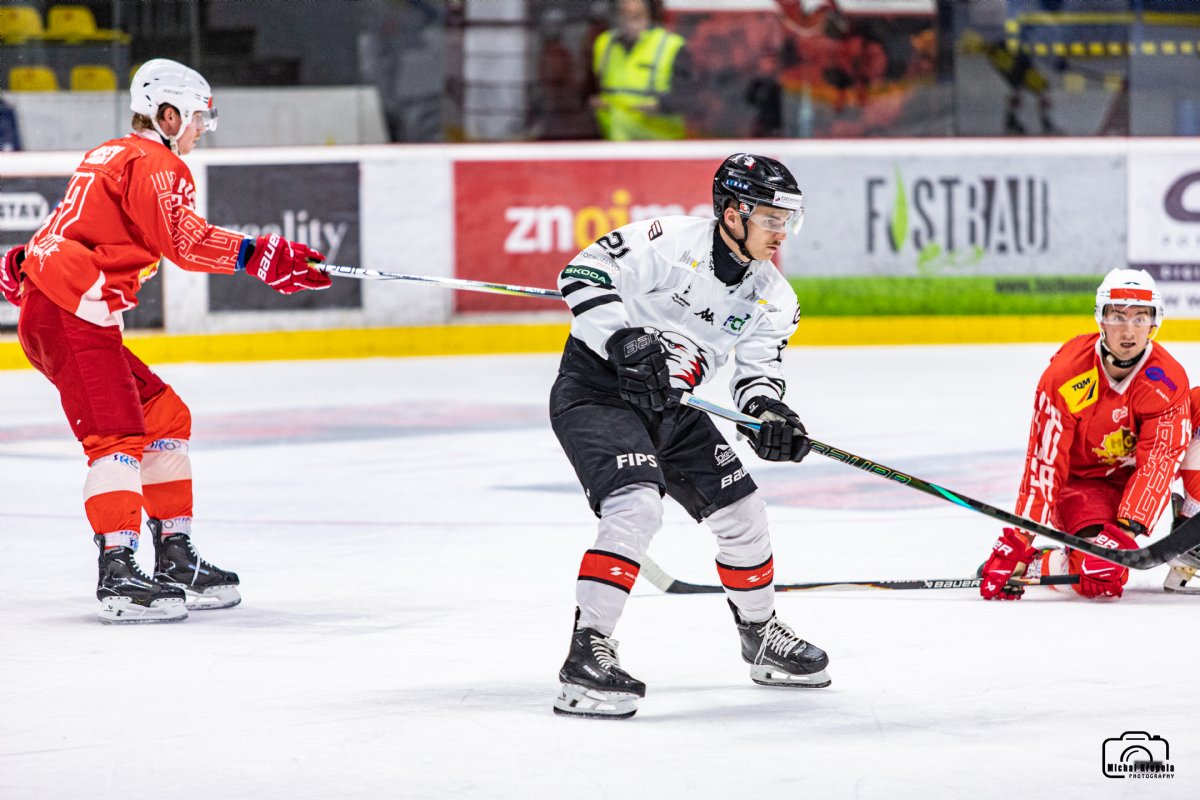 Do konce třetiny ale znojemští hokejisté první letošní desítku nakonec dali. Nejprve z výhodné pozice neproměnil po Komínkově nabídce Jenyš, ale nemuselo ho to příliš mrzet, protože vysněný desátý gól završil Mikuláš Bícha, který díky důrazu před brankou opět přinesl domácím fanouškům radost.